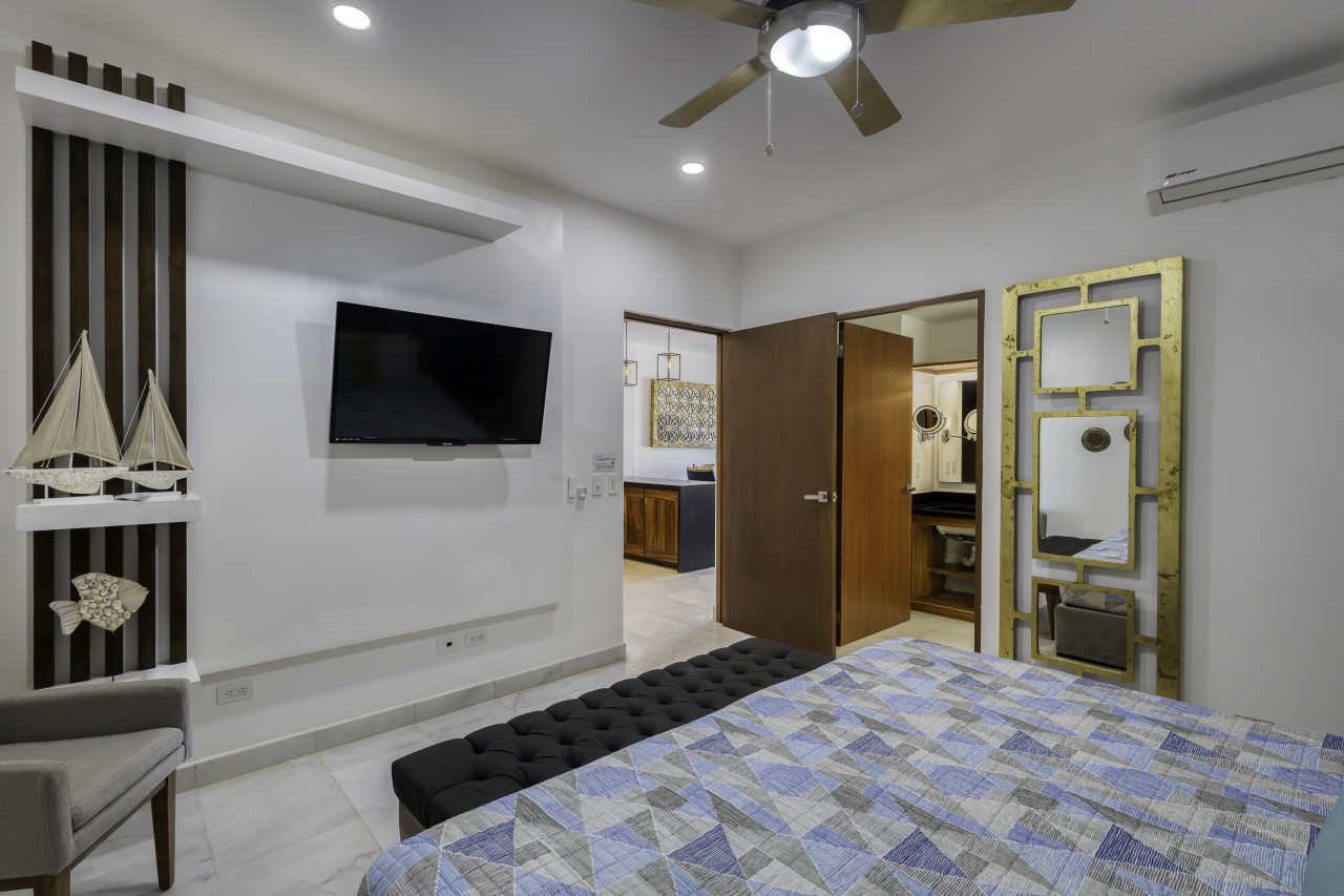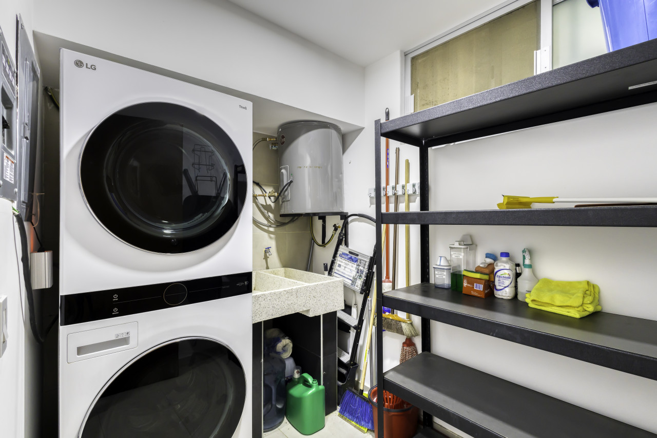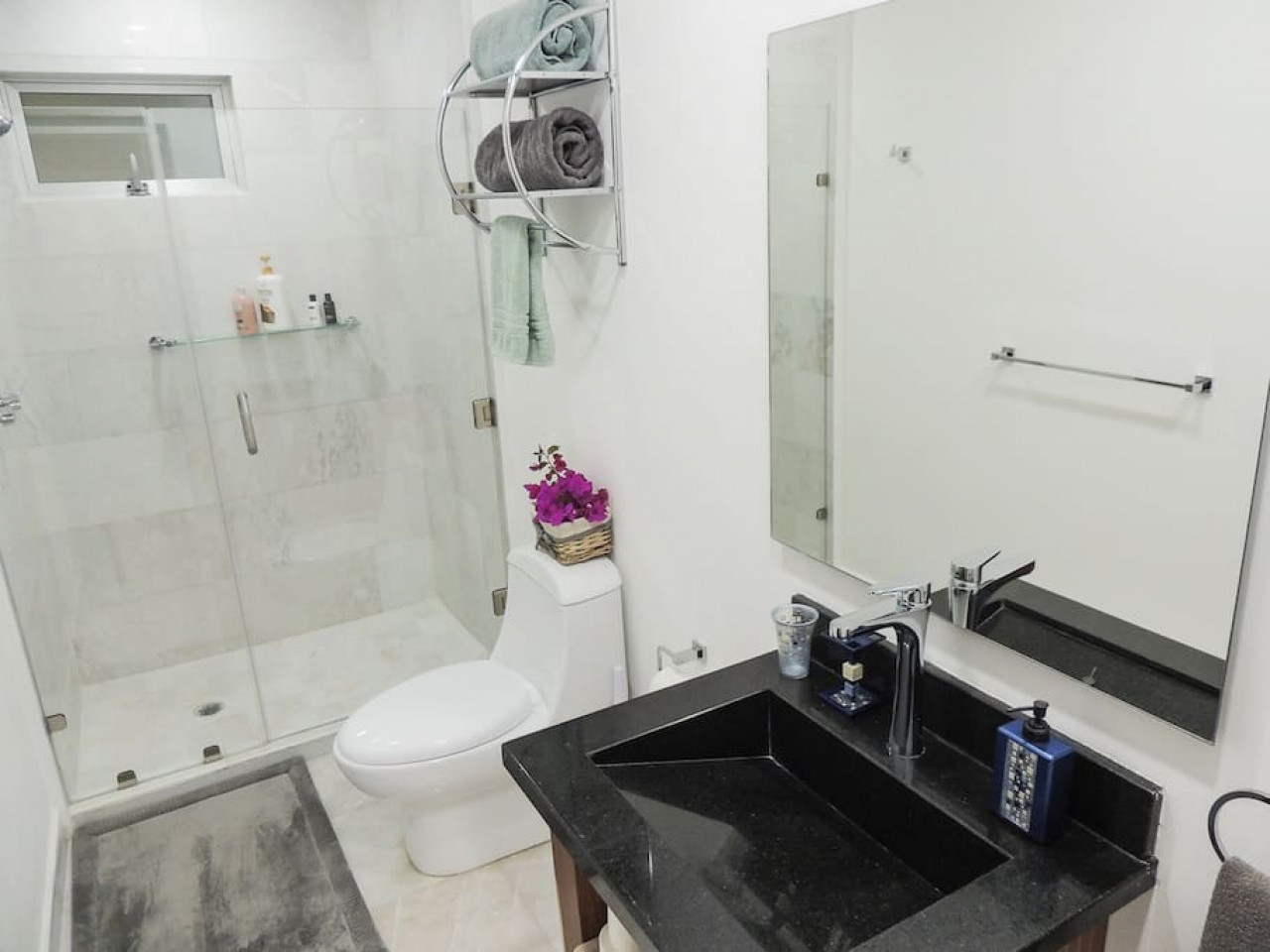 Puedes salir de tu habitación para acceder a todas las áreas comunes como la piscina no climatizada, la parrilla, el balcón privado y el estacionamiento. Este condominio tiene todo lo que necesitarás para tu estadía. Una increíble cama king size, vestidor, baño privado, medio baño, plancha, secador de pelo, lavadora y secadora privadas. Hay un televisor en la habitación y otro en la sala de estar.