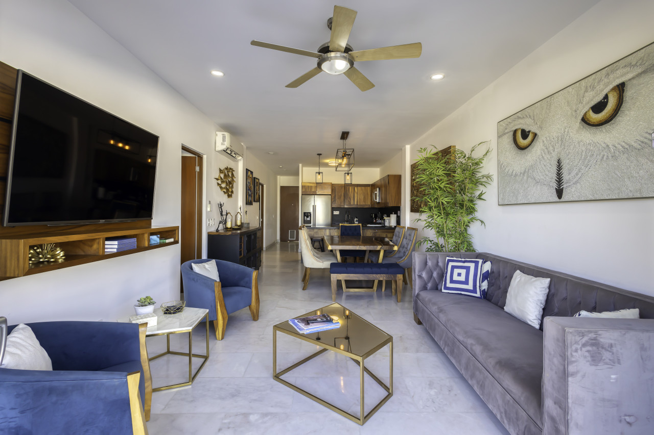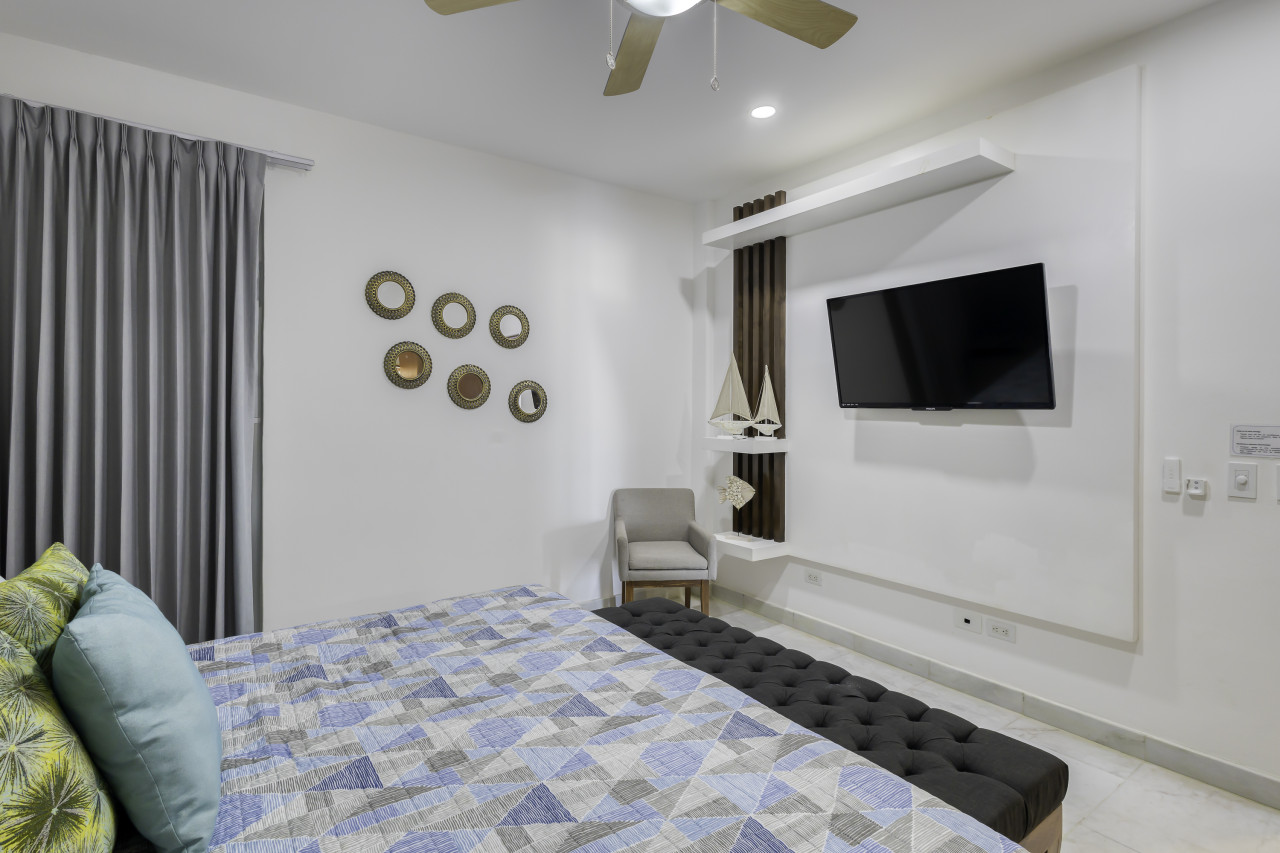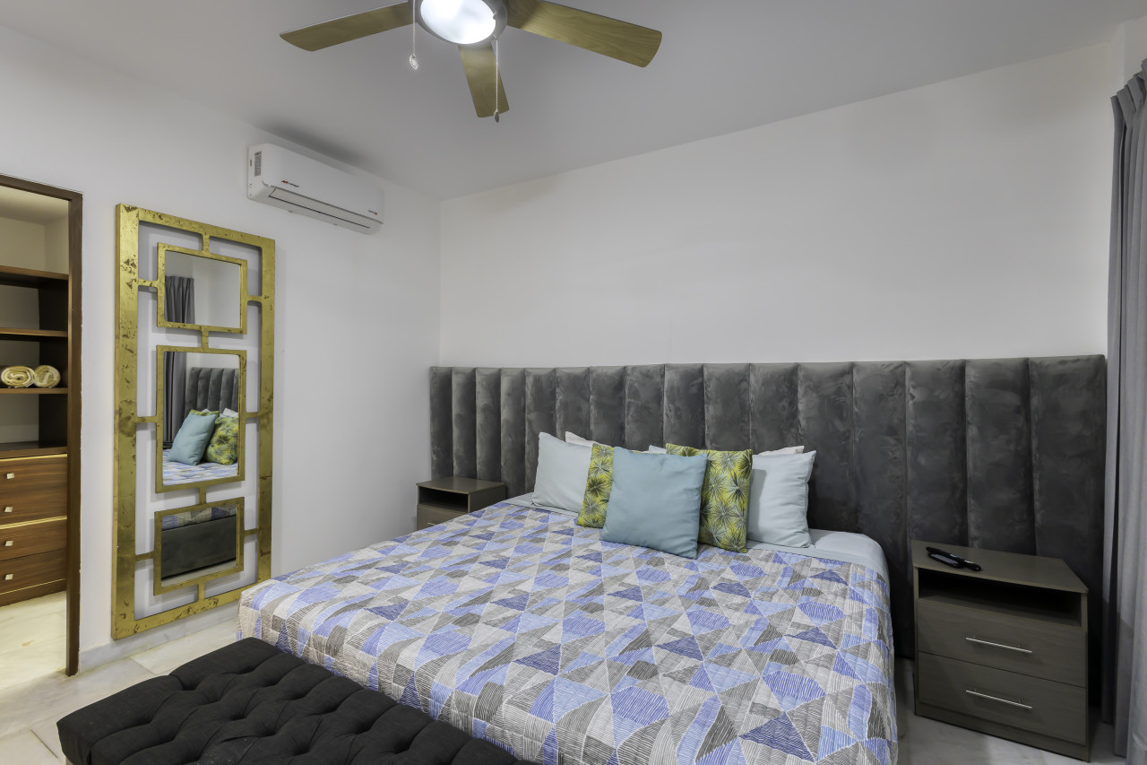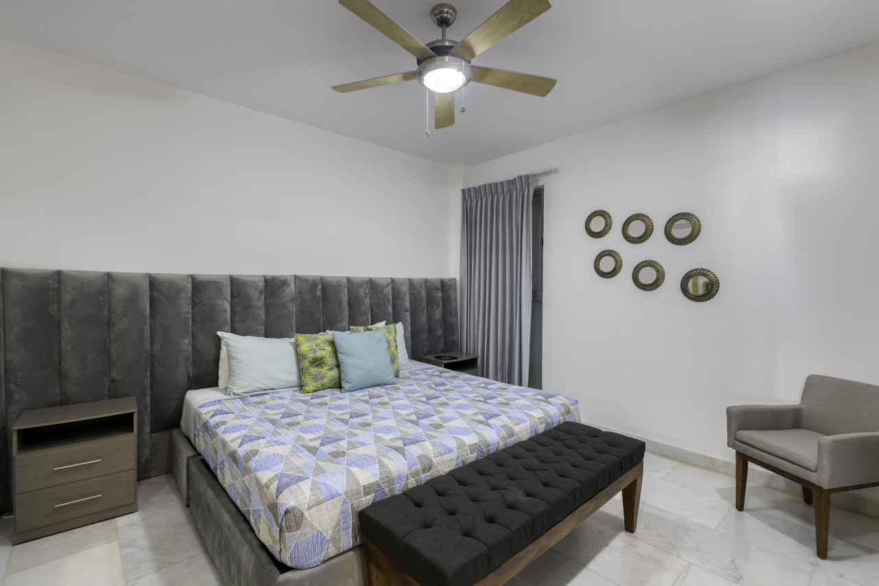 Puedes salir de tu habitación para acceder a todas las áreas comunes como la piscina no climatizada, la parrilla, el balcón privado y el estacionamiento. Este condominio tiene todo lo que necesitarás para tu estadía. Una increíble cama king size, vestidor, baño privado, medio baño, plancha, secador de pelo, lavadora y secadora privadas. Hay un televisor en la habitación y otro en la sala de estar.