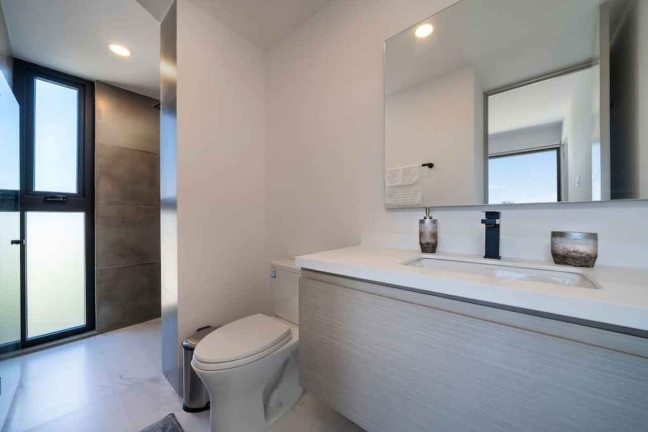 Indulge in an exquisite bathroom with excellent natural lighting. A serene and rejuvenating space for your comfort