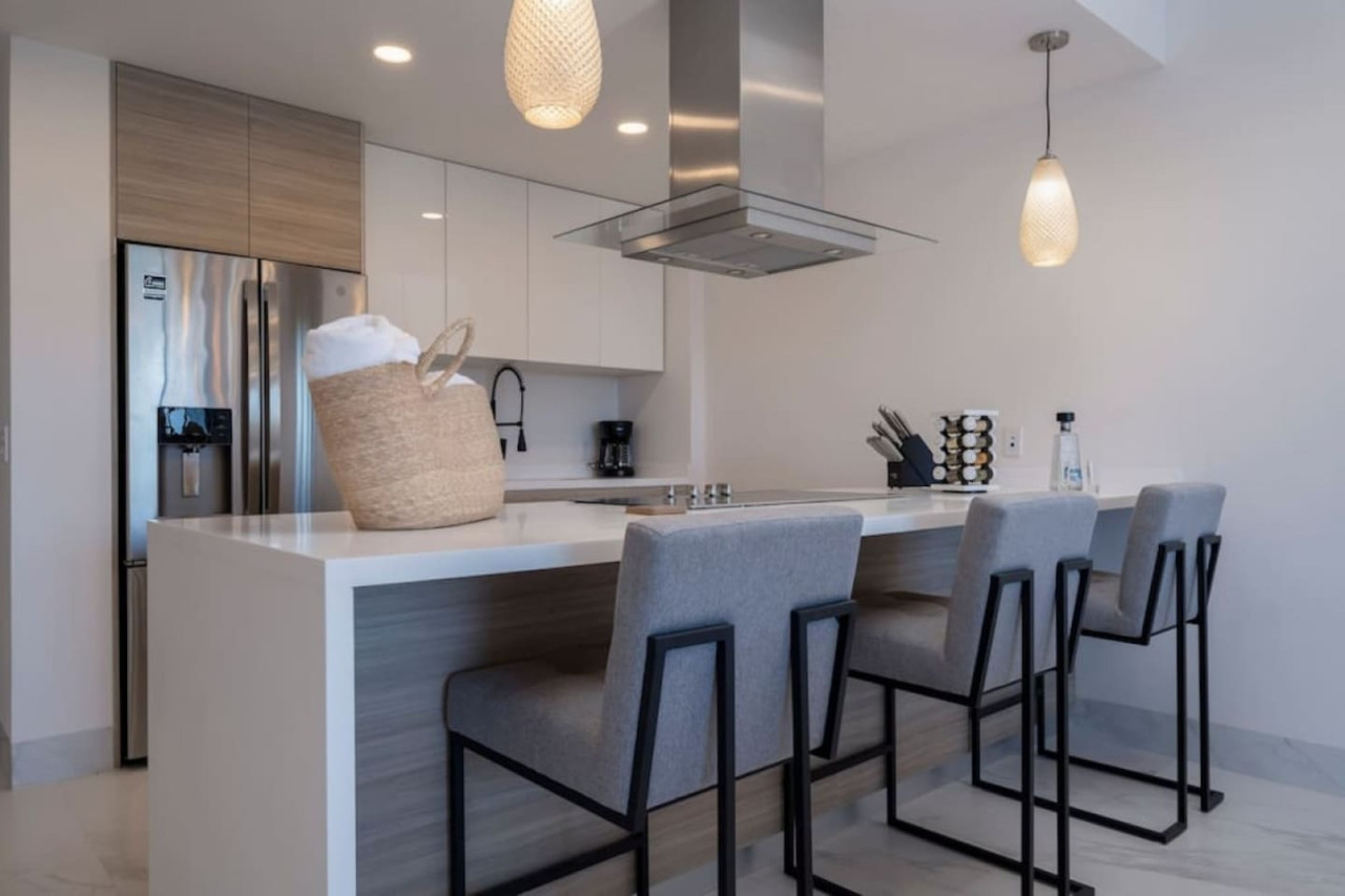 Enjoy our fully-equipped modern kitchen that flows into the dining and living area. State-of-the-art electronics await your culinary magic or opt for a chef service in your condo.