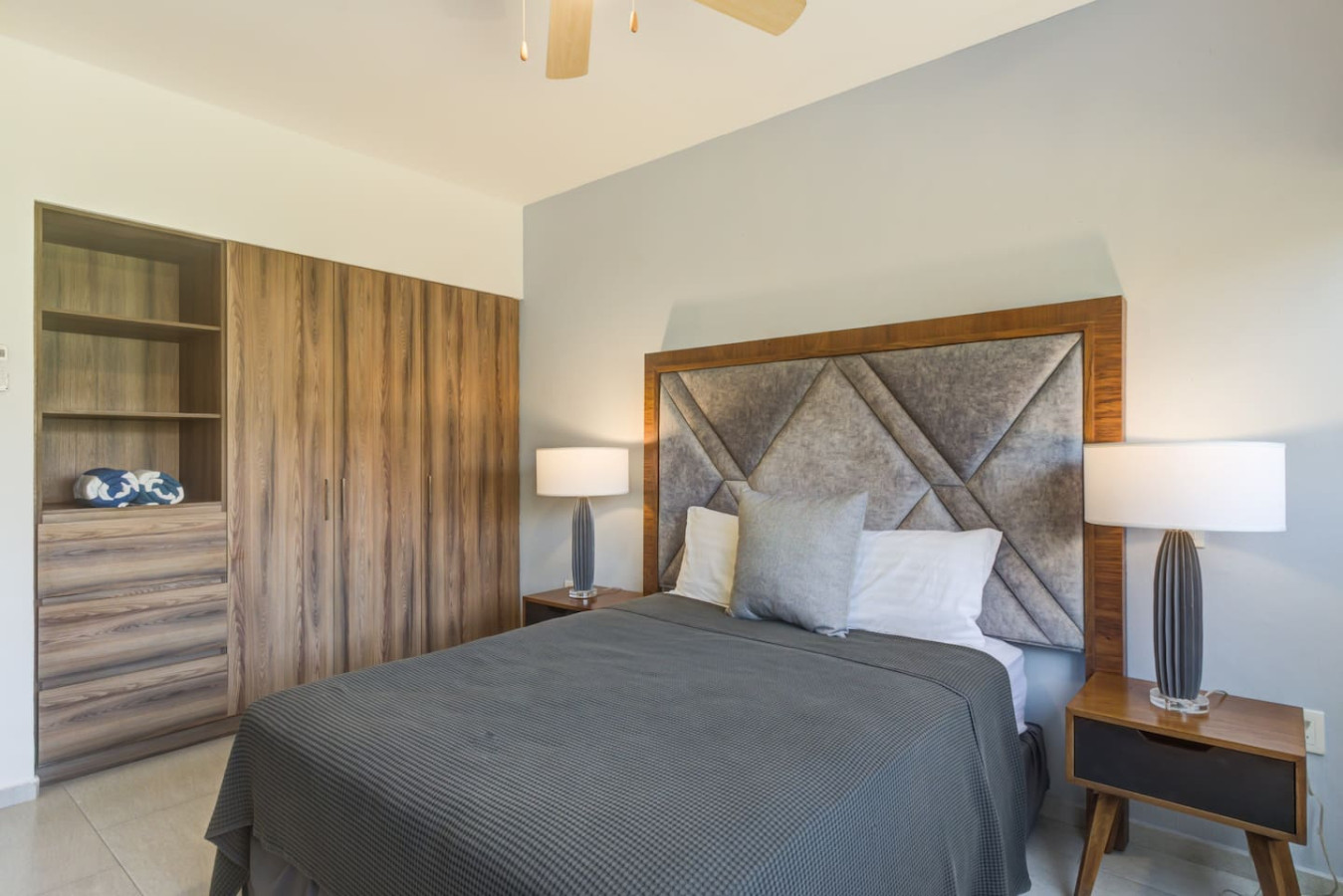 Bedroom 1: Features a king-size bed, private bathroom, walk-in closet