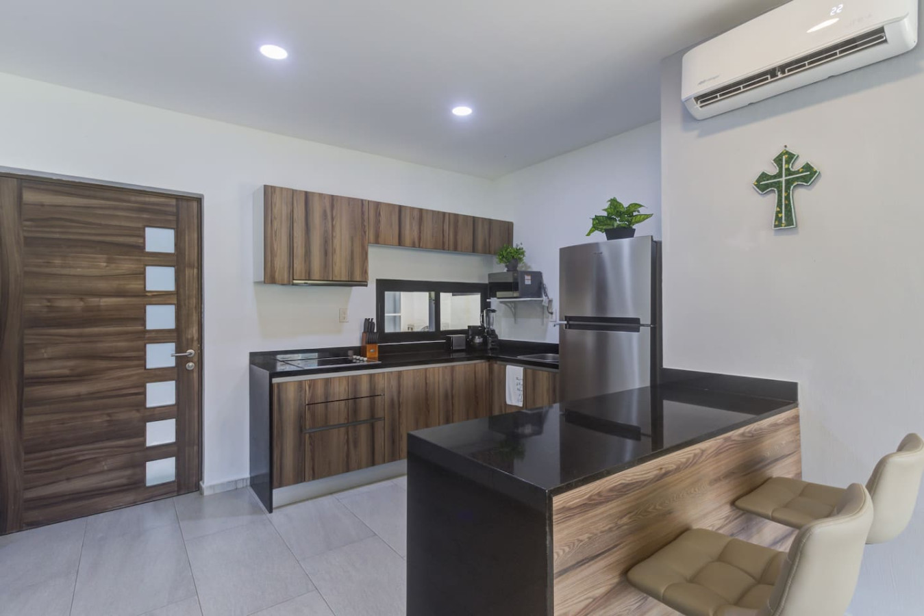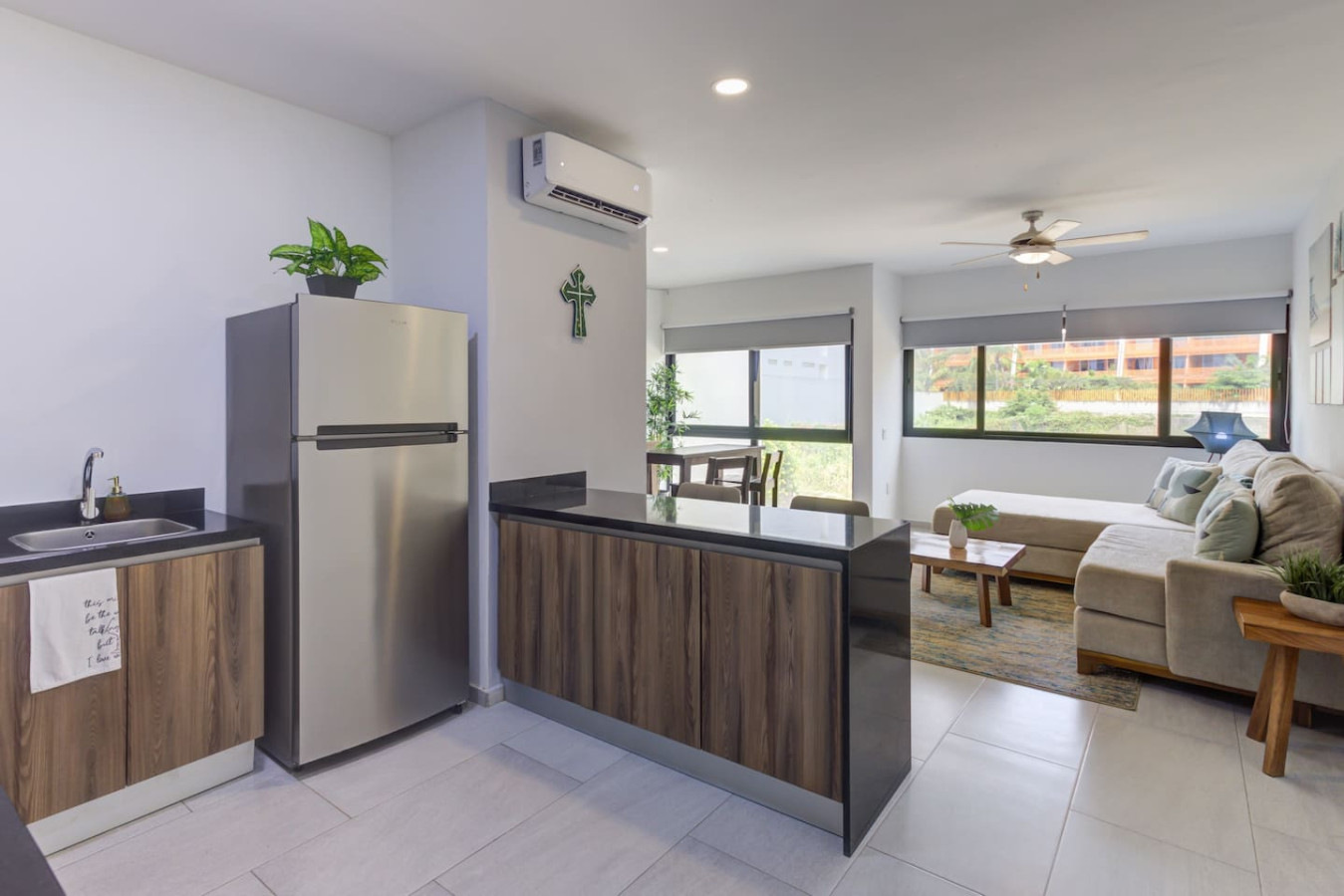 Enjoy life in La Cruz de Huanacaxtle! Beautiful apartment just a 4-minute walk from the beach. Located in a peaceful area, ideal for relaxation, it features amazing common areas: a pool, barbecue, and whirlpool tub. Perfect for unwinding or enjoying with friends and family. A paradise near the sea!