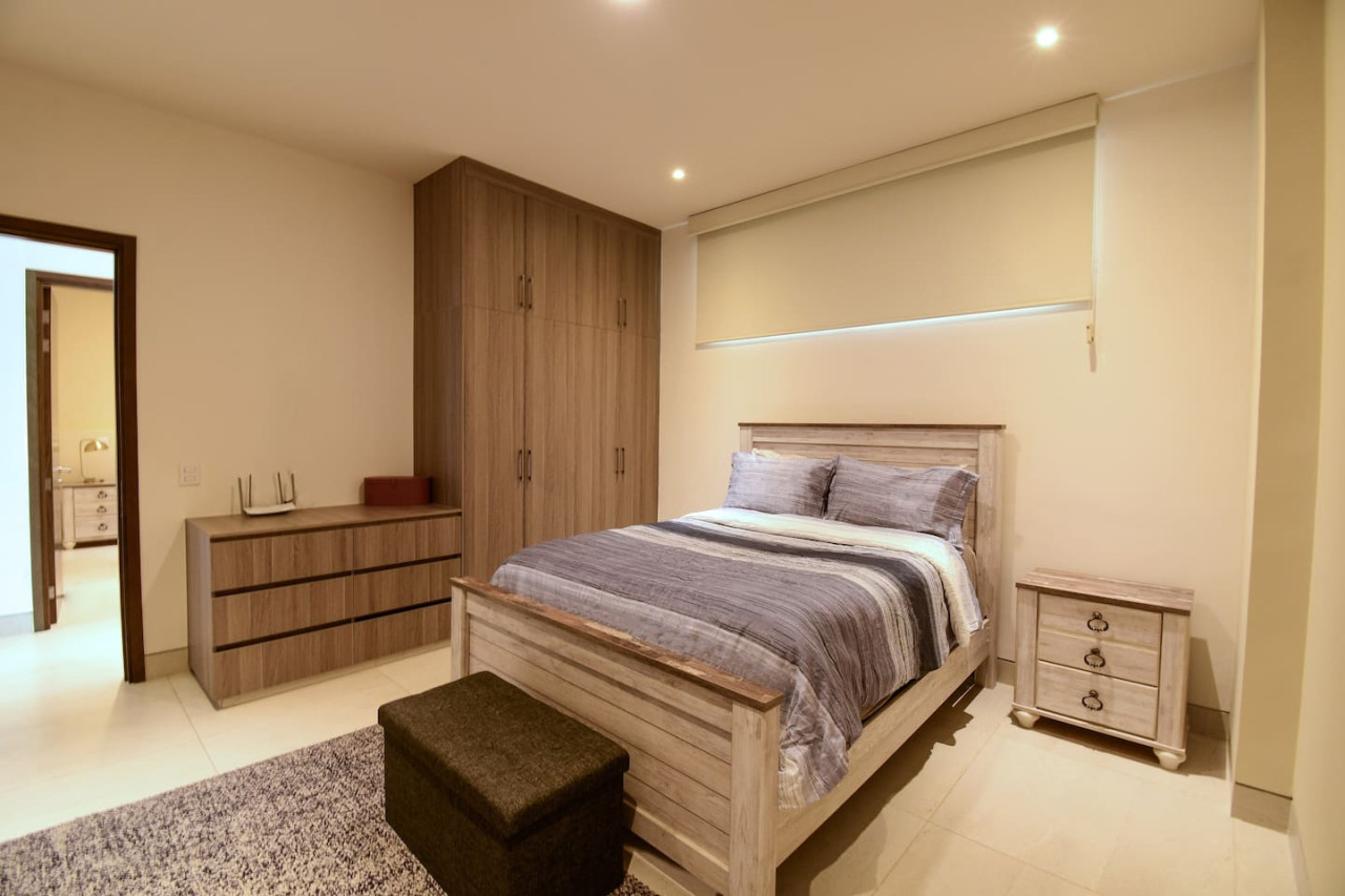 Bedroom 2: Offers a Queen-size bed, with its own bathroom and wardrobe.