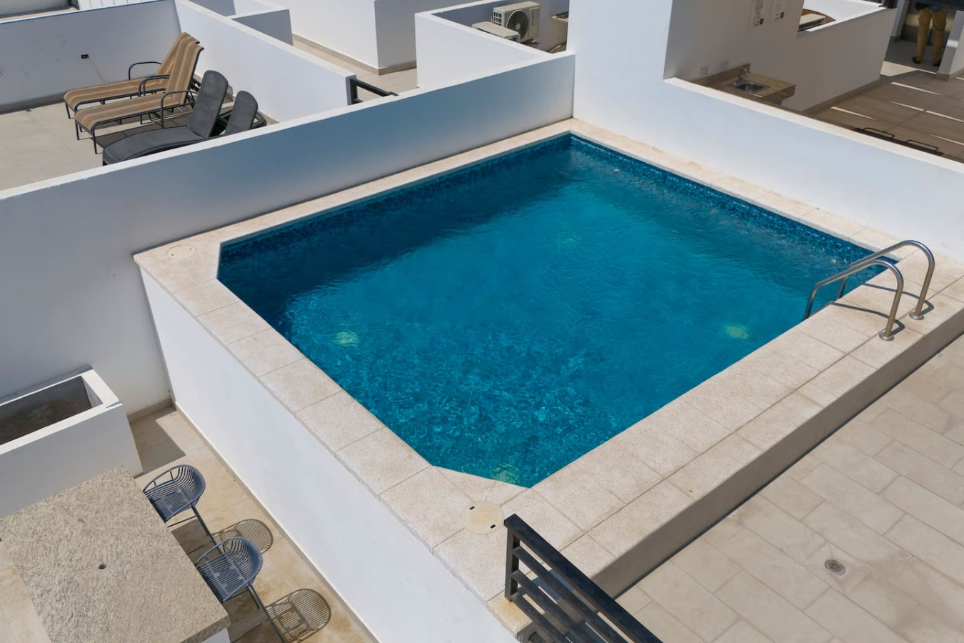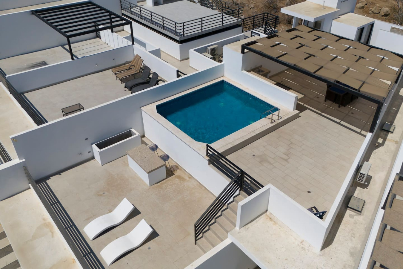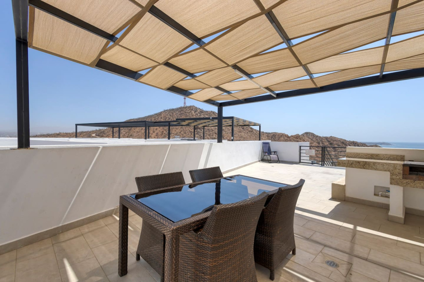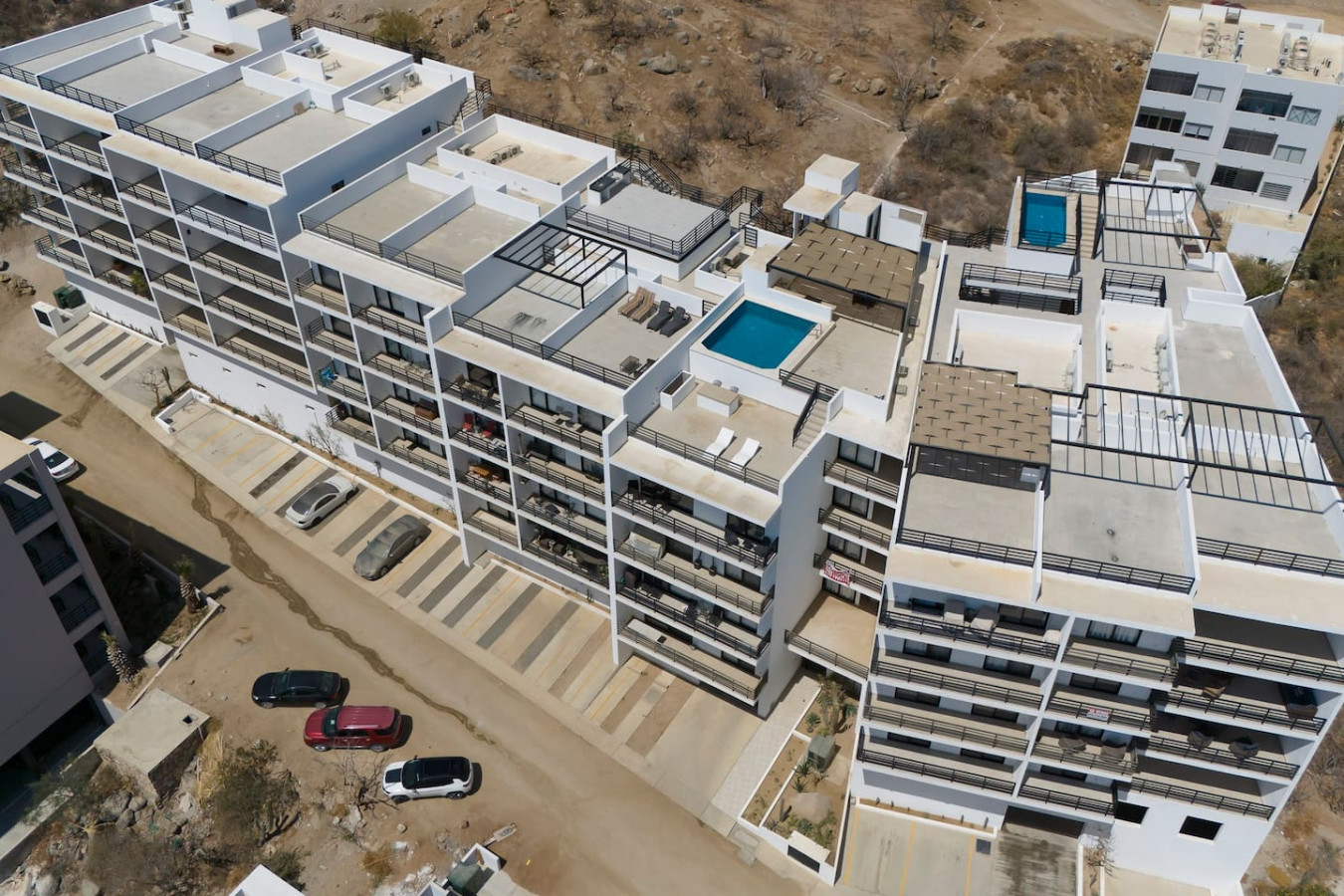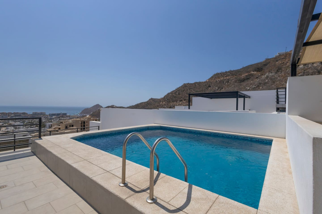 Incredible views of the city and the sea. A rooftop infinity pool (unheated) and private rooftop patio just steps aways. Enjoy the daytime breezes and sunshine year-round in a tranquil setting. Even more stunning as the lights of Cabo come on as the sun sets. Just a 5 -7 minute Uber or drive to all the nightlife, Marina, restaurants and shops.
