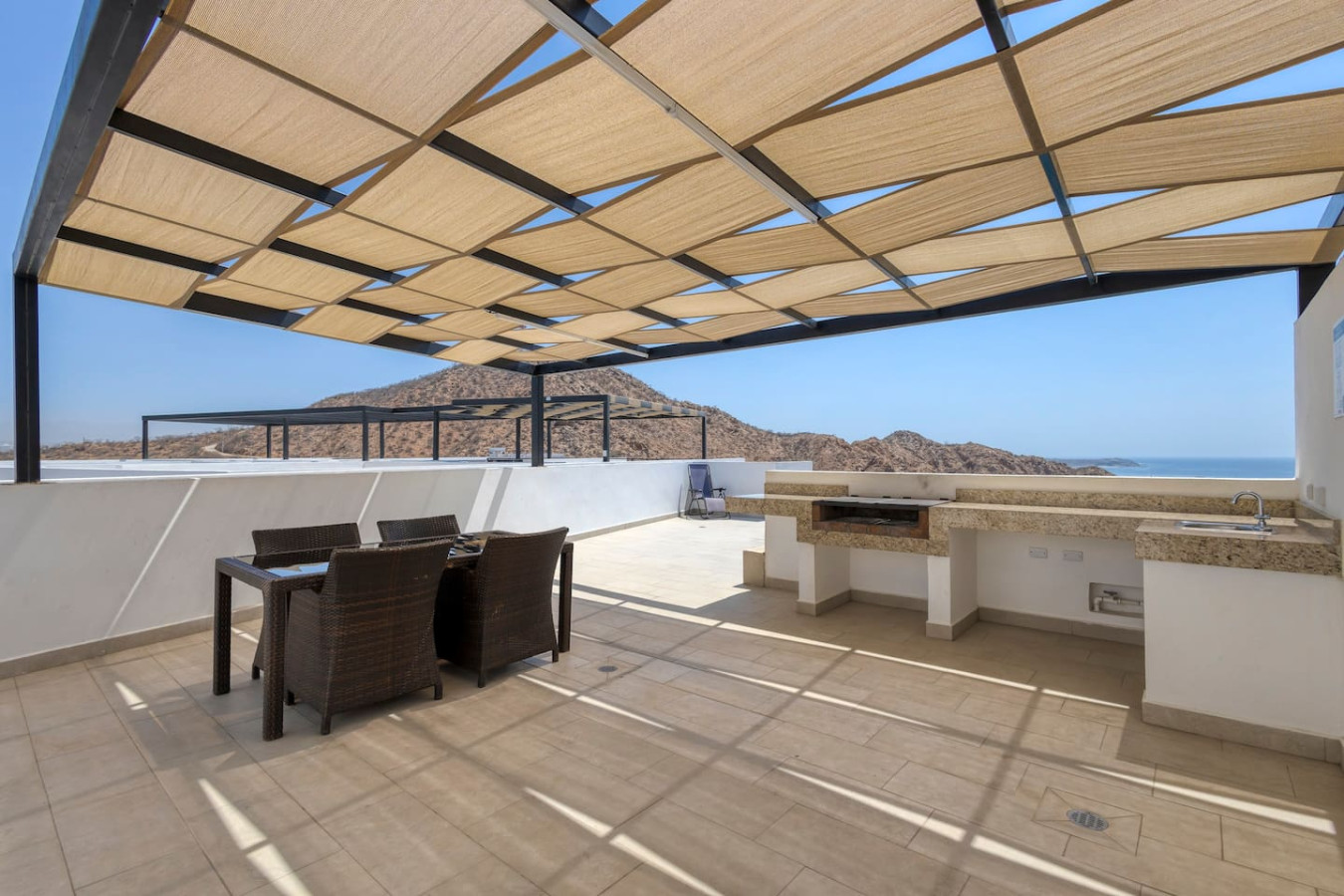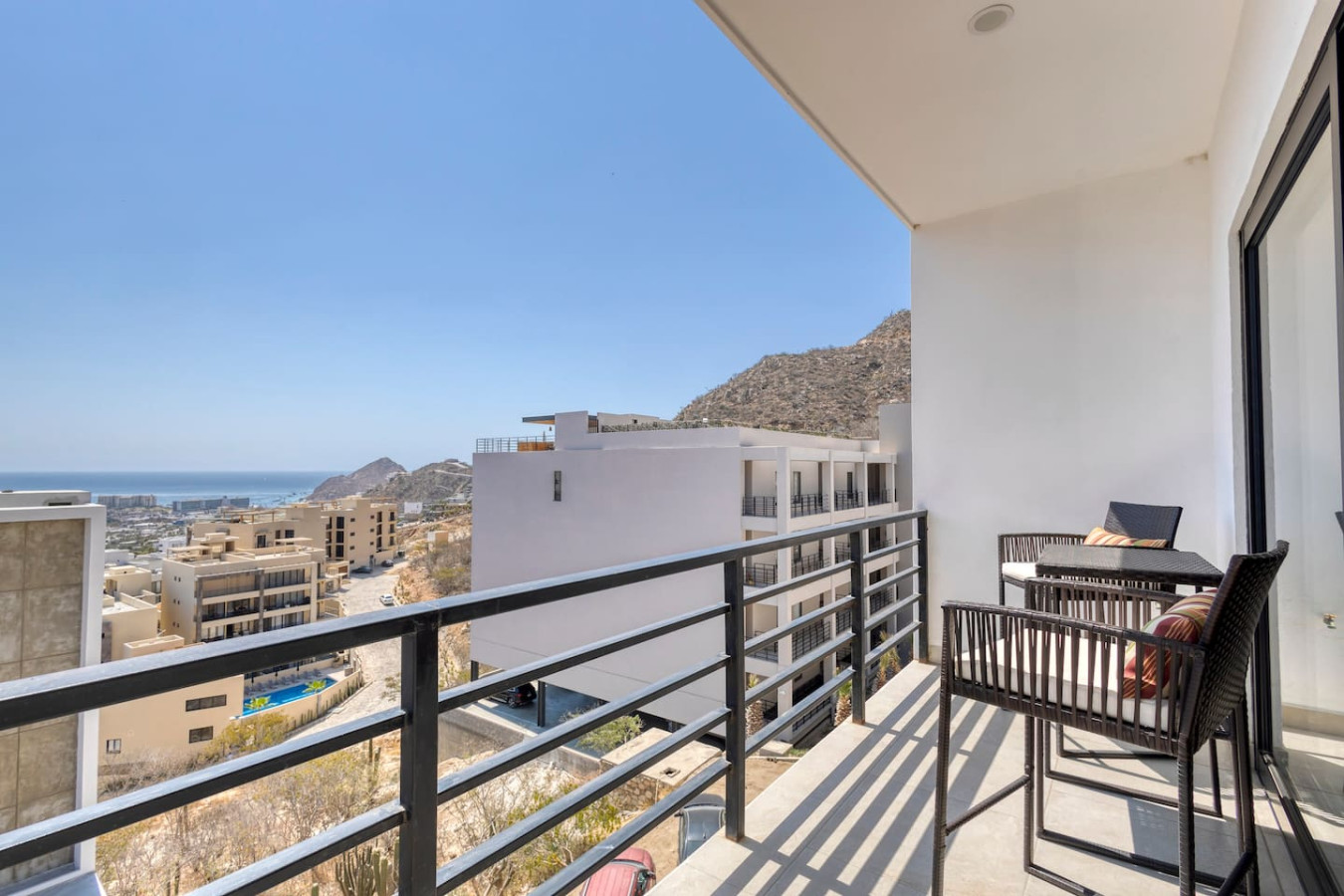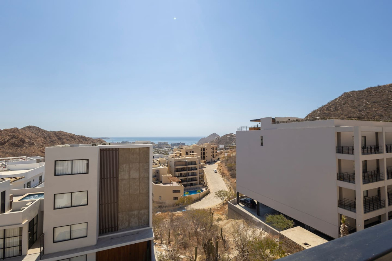 Enjoy the luxury lifestyle in this exquisite 2-bedroom, 2-bathroom apartment offering unparalleled views of Cabo San Lucas, reaching out to the horizon of the sea. Situated in a privileged location, this apartment provides luxurious amenities in the rooftop area, including an unheated pool, barbecue area and a PRIVATE space with loungers, perfect for entertaining or relaxing in style. Experience the epitome of comfort and convenience in this meticulously designed sanctuary.