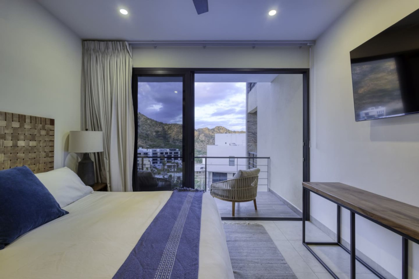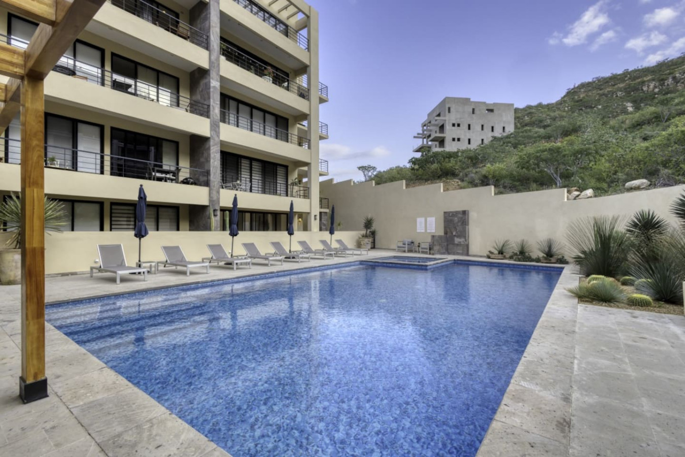 Enjoy incredible views of the city and partial sea views. The common areas feature a pool, a jacuzzi, and a gym in the courtyard. Bask in the daytime breezes and year-round sunshine in a tranquil setting. The scenery becomes even more impressive as the lights of Cabo come alive at sunset. The city center, Marina, restaurants, and shops are just a 5-7 minute Uber or car ride away.