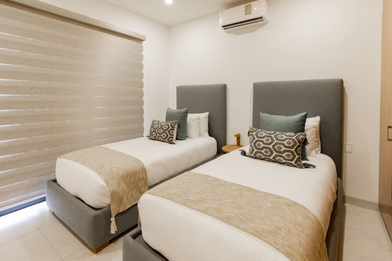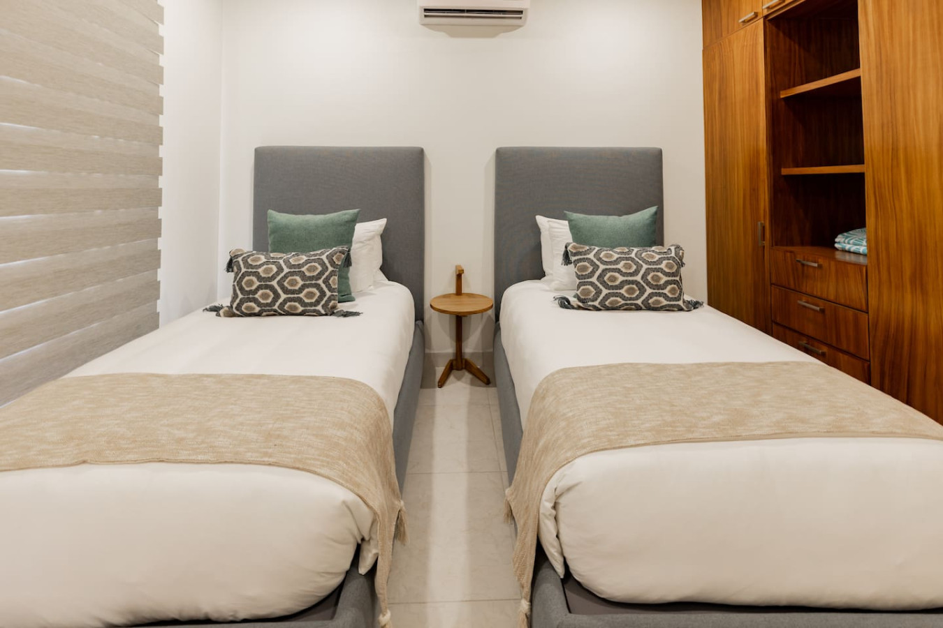 - **Bedroom 3:** Provides 2 twin beds, a wardrobe, and AC.
