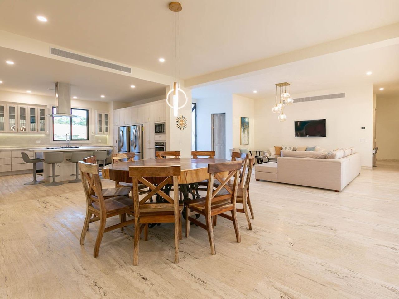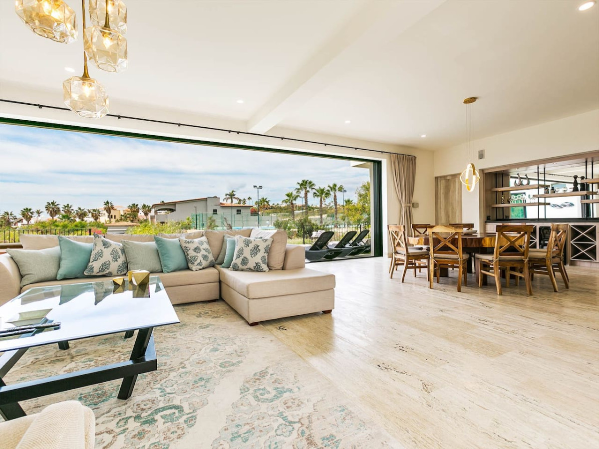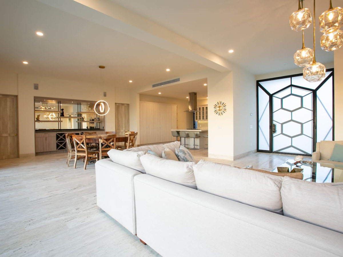 This unique Villa offers a single level configuration, perfectly designed to integrate guests and at the same time respect their privacy. 4 master bedrooms all of them with full bathroom and terrace integrates to the house with a spacious grand salon that melds with the outdoors heated pool and jacuzzi, all displayed with elegance and great taste. A perfect and balanced space for your family and friends to create unforgettable memories.