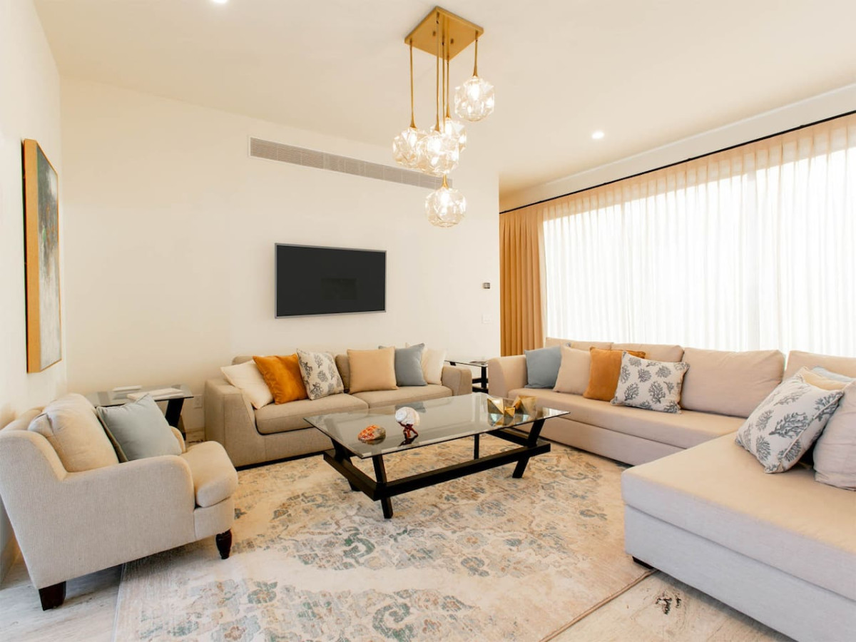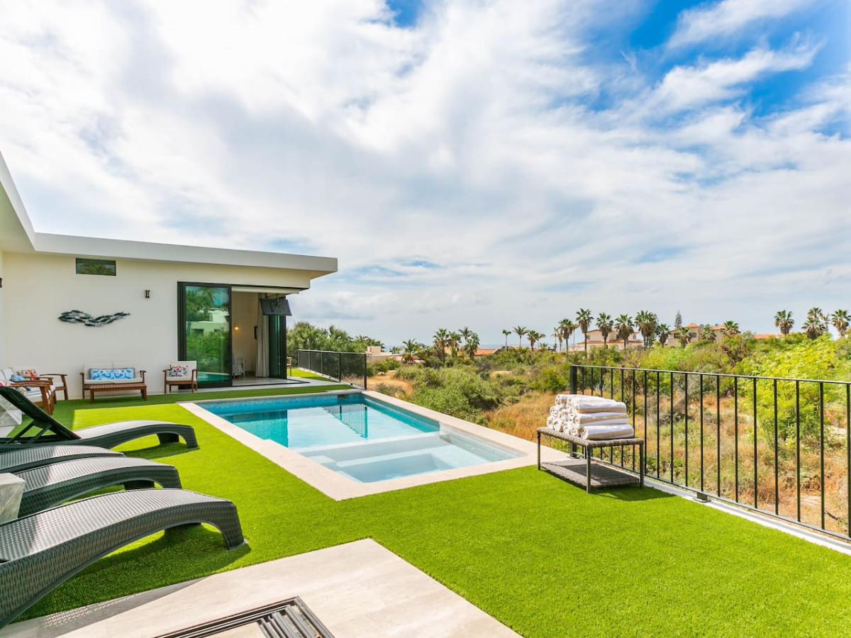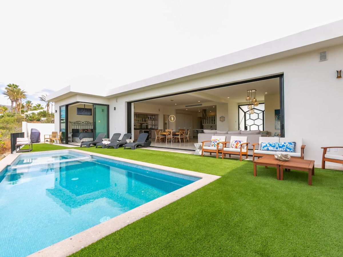 This unique Villa offers a single level configuration, perfectly designed to integrate guests and at the same time respect their privacy. 4 master bedrooms all of them with full bathroom and terrace integrates to the house with a spacious grand salon that melds with the outdoors heated pool and jacuzzi, all displayed with elegance and great taste. A perfect and balanced space for your family and friends to create unforgettable memories.